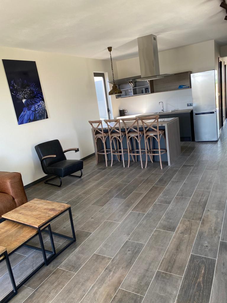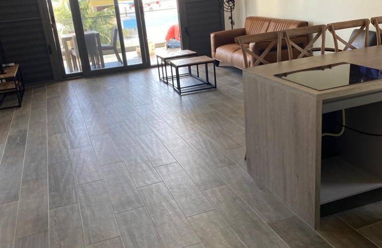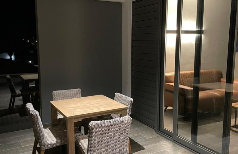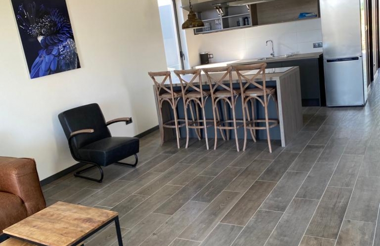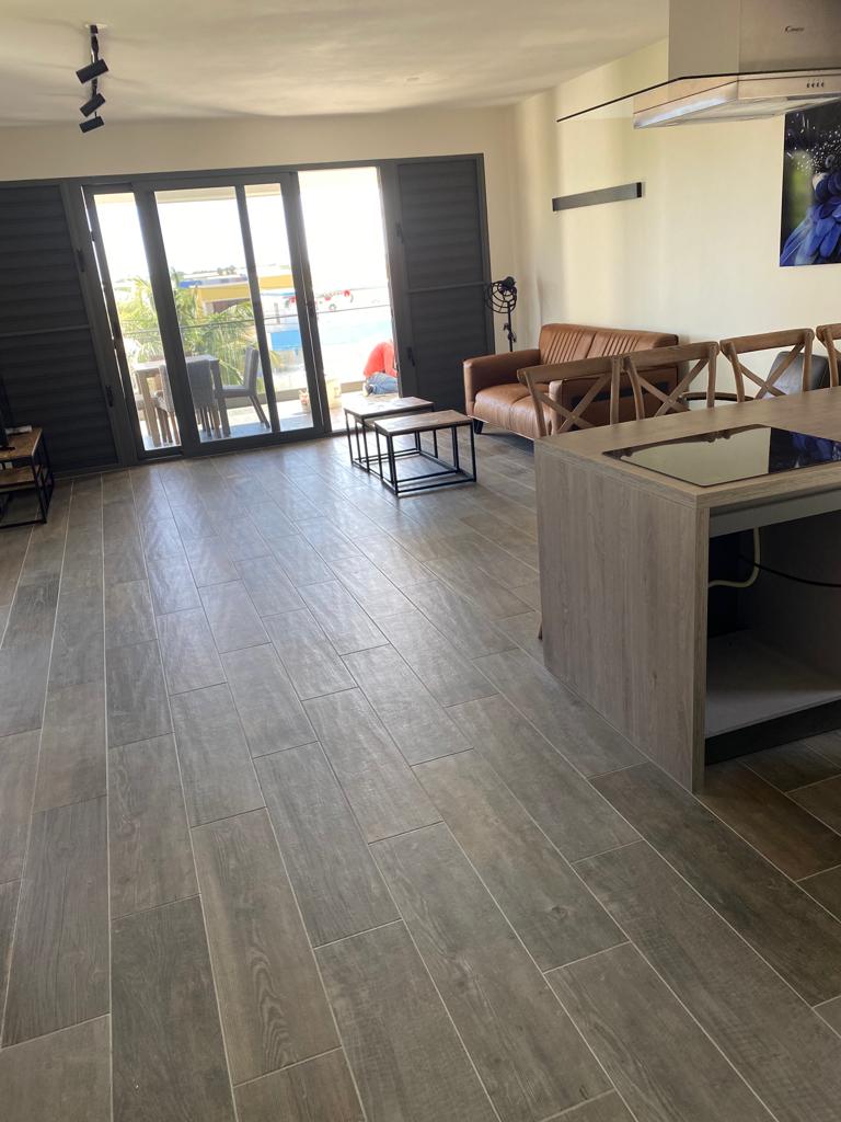 Dit luxe 2-slaapkamer appartement is gelegen op loopafstand van het centrum van Kralendijk. Bij binnenkomst kom je in de hal met aan beide kanten een slaapkamer. Beide slaapkamers zijn voorzijn van air conditioning. Er is 1 badkamer in het midden van de hal. Aan het einde van de hal, kom je uit bij de open keuken met eetgedeelte en woonkamer. De keuken is volledig uitgerust. Het appartement heeft een moderne uitstraling door de indeling en interieur. Door de grote ramen bij de keuken en woonkamer, komt er veel natuurlijk licht binnen. Aan de voorkant van het appartement kun je het overdekte terras vinden.